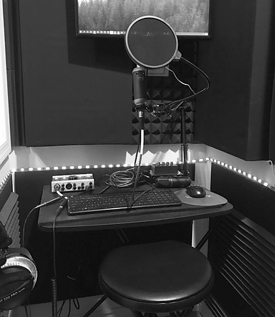 4x6 Custom built recording space. Sound insulated walls. Custom made acoustic panels and additional acoustic treatment.